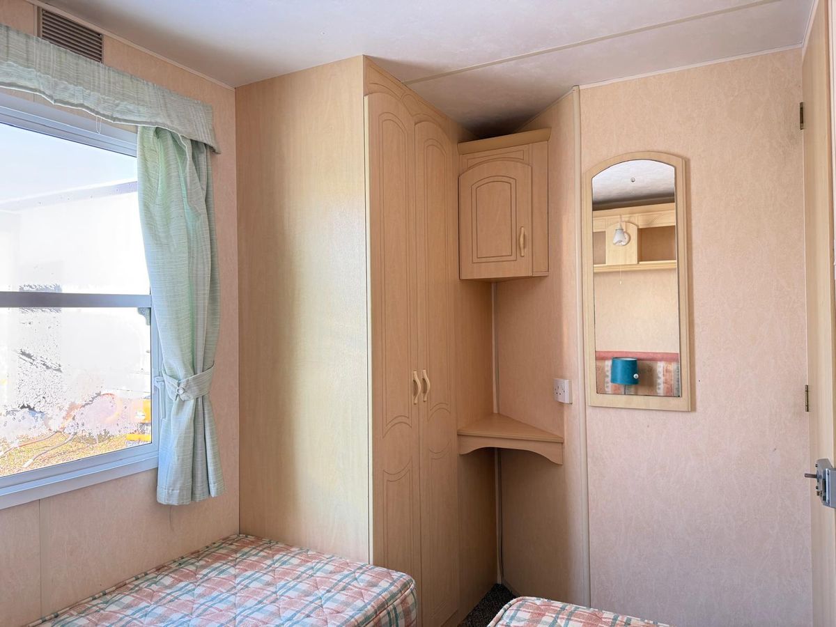 EL DORMITORIO 2 cuenta con dos camas individuales con cabeceros suaves, mesita de noche, armarios empotrados y espejo.