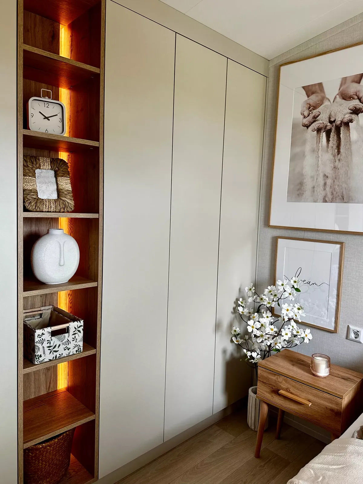 RECIBIDOR con amplio armario empotrado, lavadora incorporada, asiento tapizado y perchero.