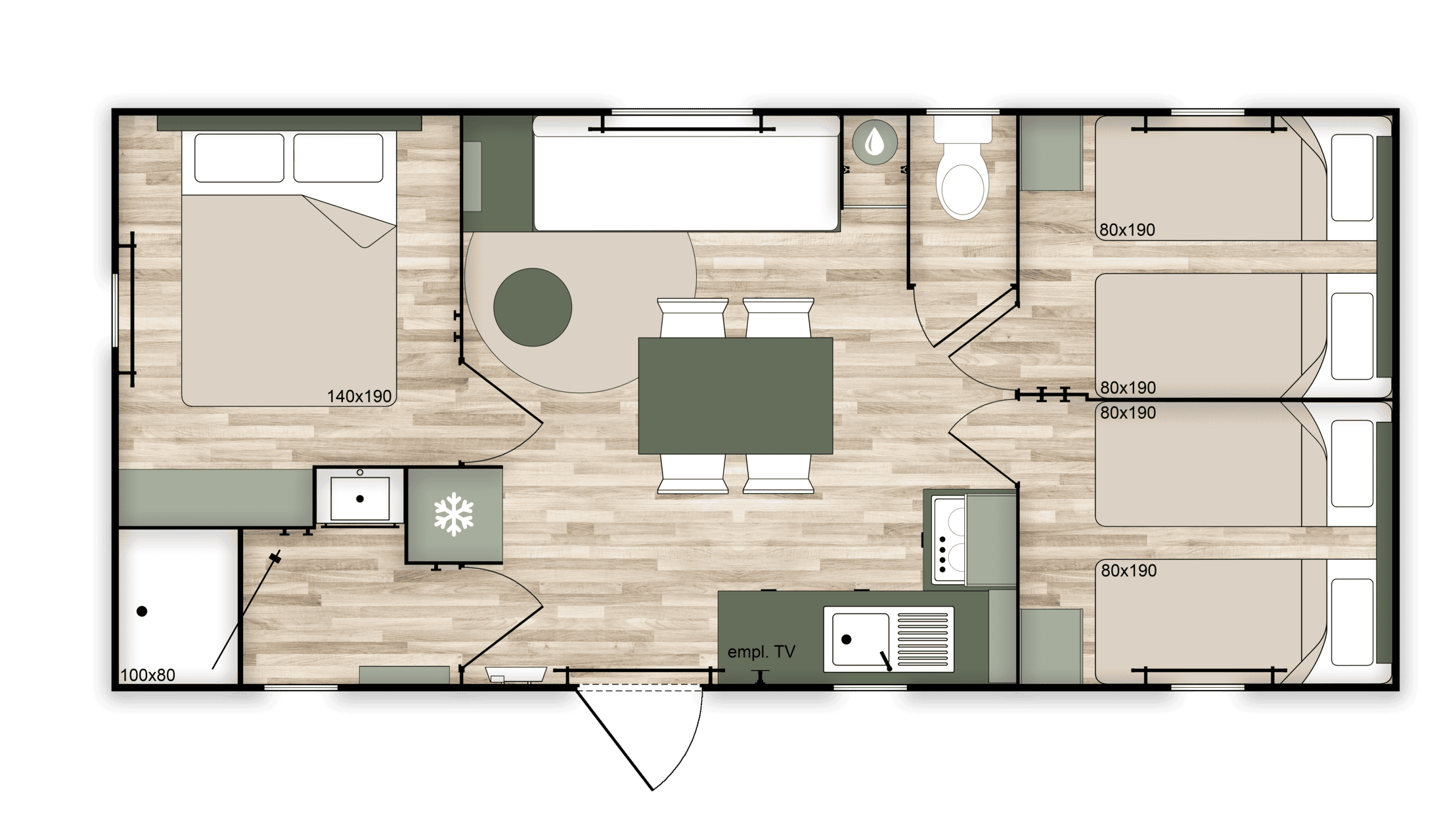 Casa móvil Trigano – 3 dormitorios, 1 baño – Nest 33.3